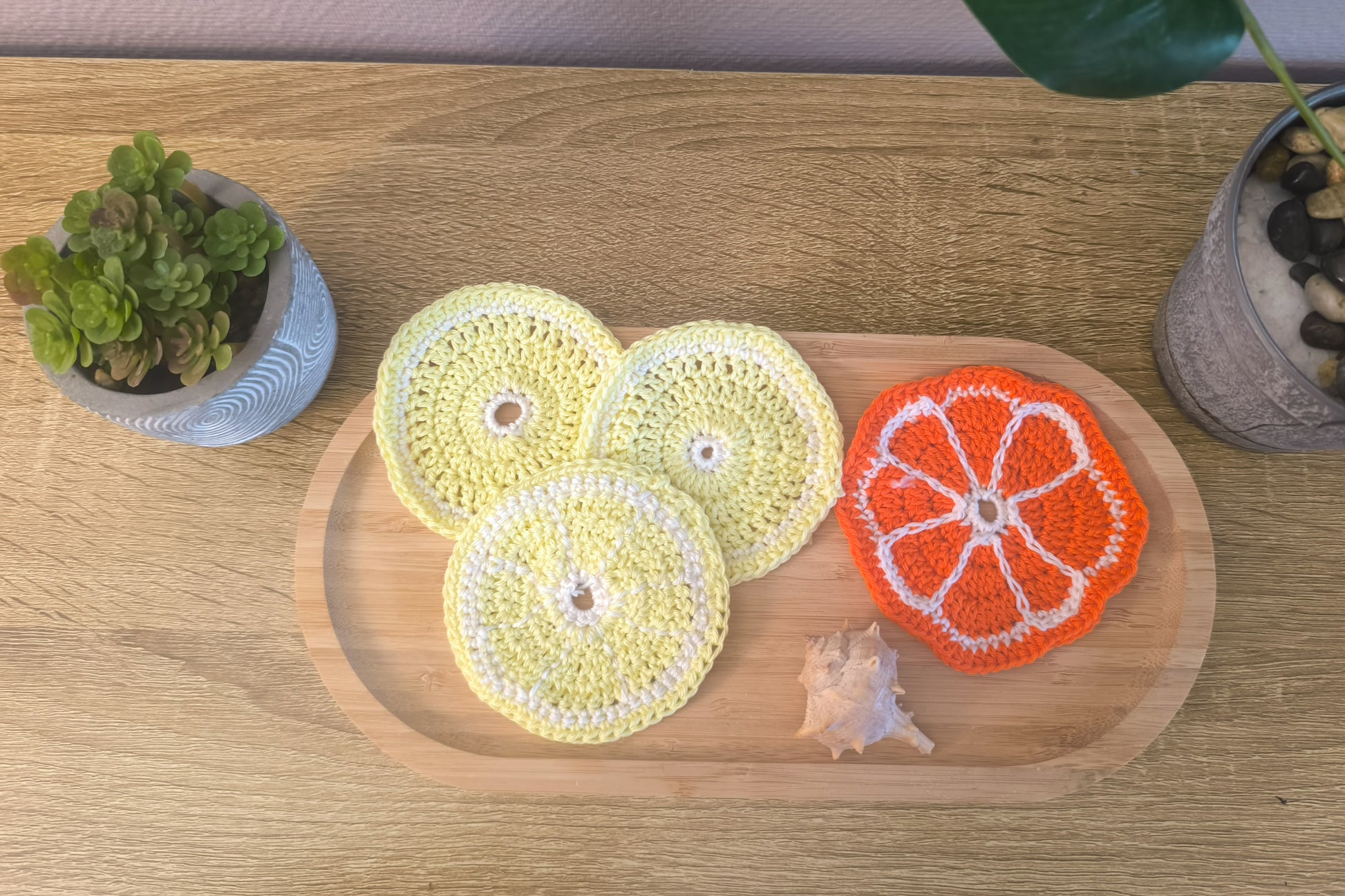 Apportez une touche fruitée colorée et à vos apéritifs ou pauses cafés avec ces jolis dessous de verre faits main au crochet.
